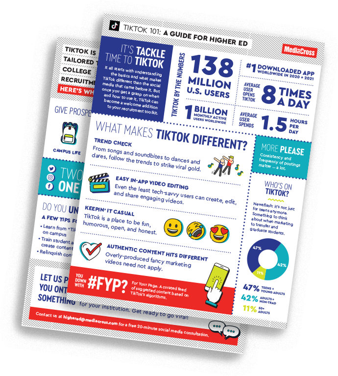 As the popularity of TikTok continues to grow, now’s a good time to start thinking about how you can use it as part of your enrollment marketing strategy. We can help.